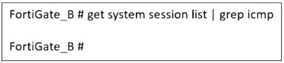 While testing the cluster using the ping command, the administrator monitors packet loss and found that the session output on FortiGate_B is as shown in the exhibit.