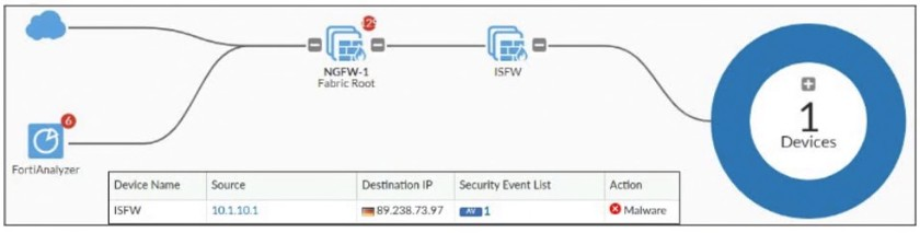 The firewall policy in on the ISFW device does not have UTM enabled and the administrator is surprised to see a log with the action Malware, as shown in the exhibit.