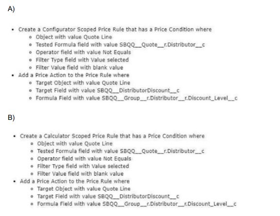 Universal Contamars wants to g«va a 23S discount on a specific Product Option purchased in the big Box bundla. In which two ways could tha admin configura CPQ to automatically apply this discount9 Choosa 2 answars